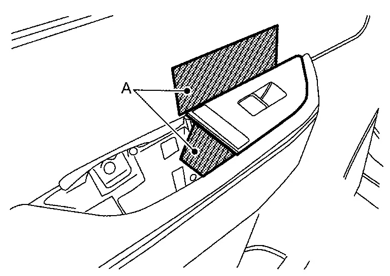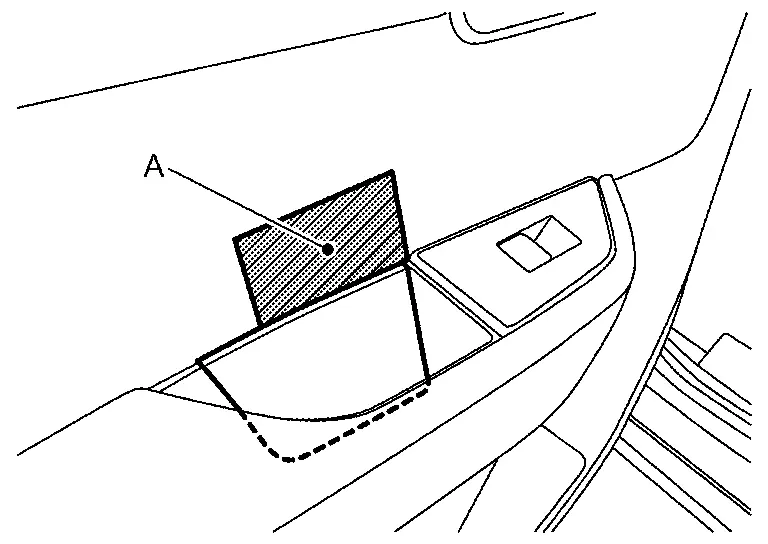 Remove power window switch finisher.Apply protective tape (A) on rear door finisher to protect it from damage.