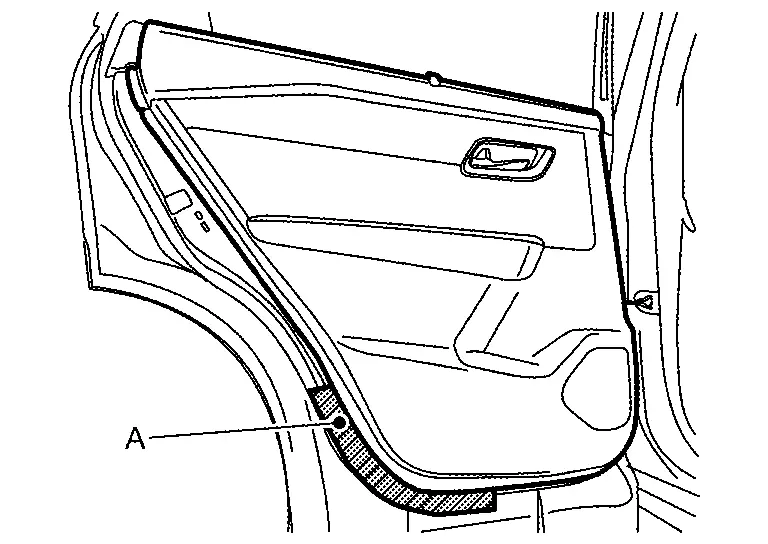 Apply protective tape (A) on rear door panel to protect it from damage.