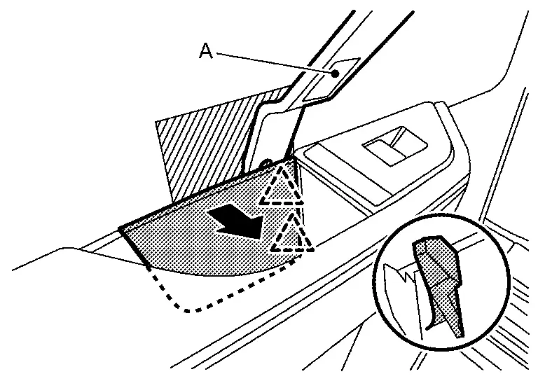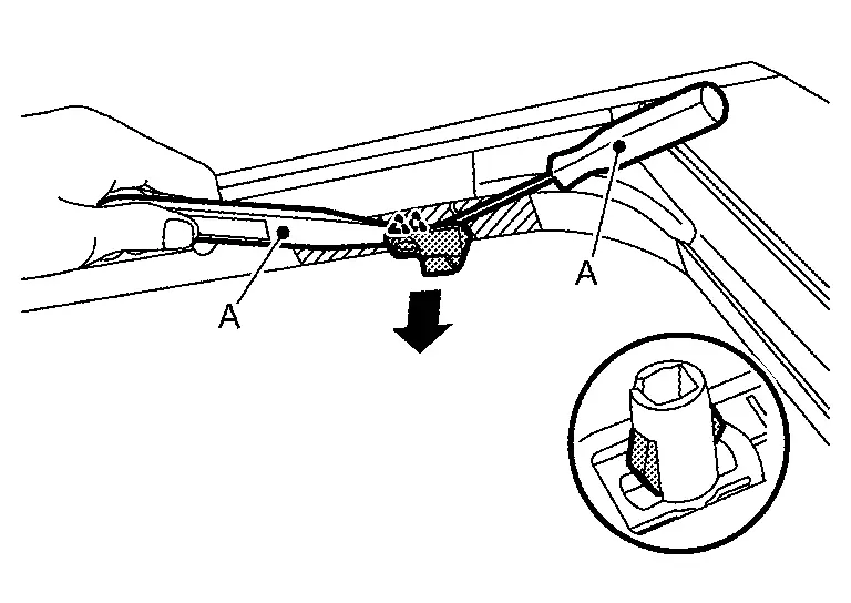 Release shade hook pawls using a suitable tool (A), and then remove shade hook.
