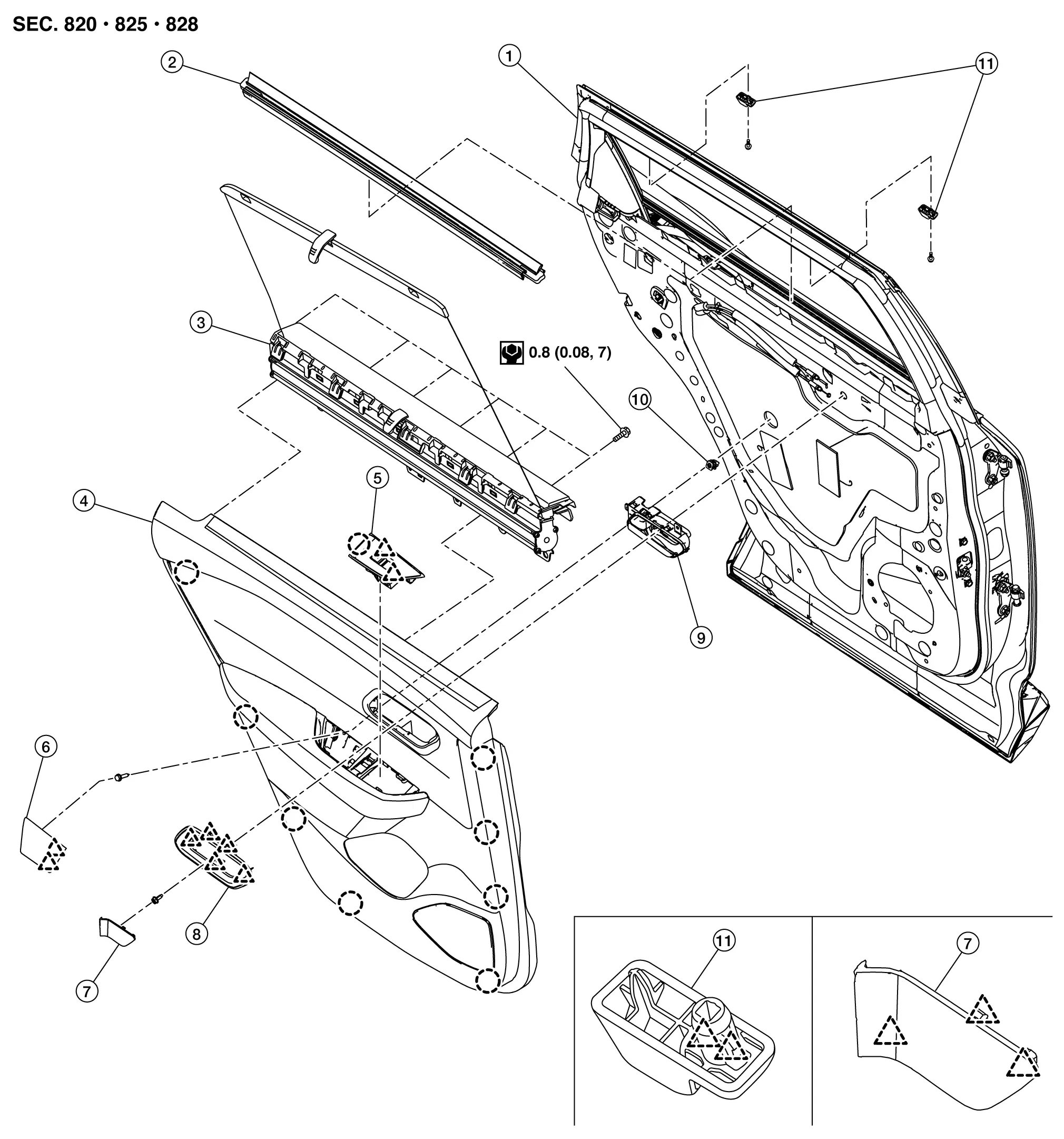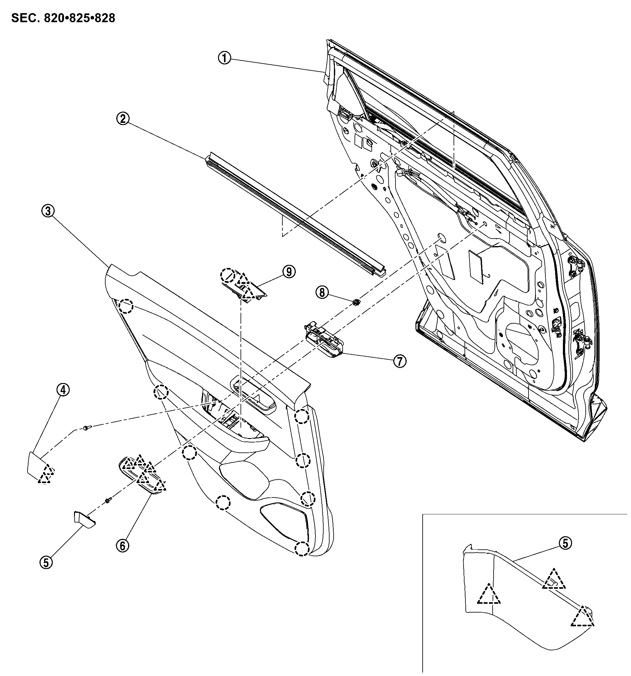 | 4. | Rear door finisher | 5. | Power window switch finisher | 6. | Pull handle cap |