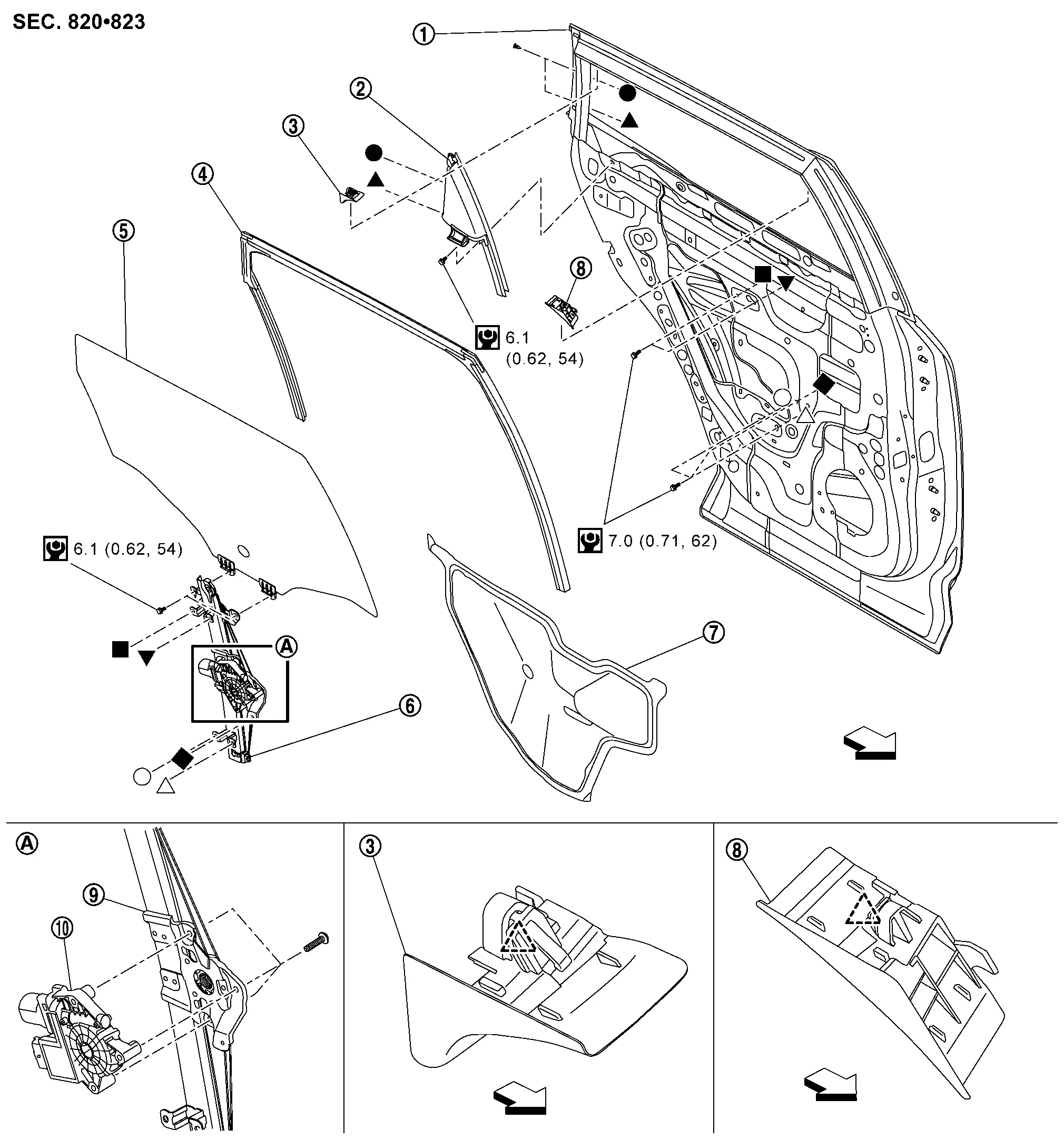 Nissan Rogue (T33) 2021-Present Service Manual: Removal and Installation :: Rear Door Glass