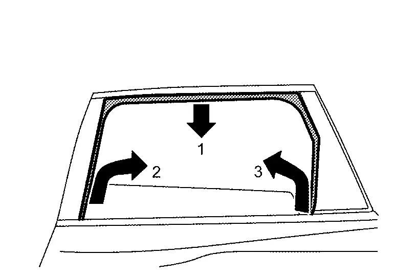 Disengage rear door glass run from rear door panel according to numerical order 1→3 indicated by arrows as shown in figure, and then remove rear door glass run.