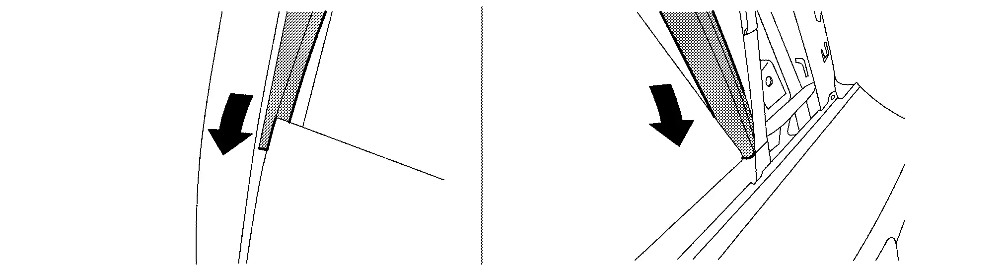 When installing rear door glass run between rear door panel/rear door corner piece and rear door glass, make sure engage glass run sash of rear door panel.
