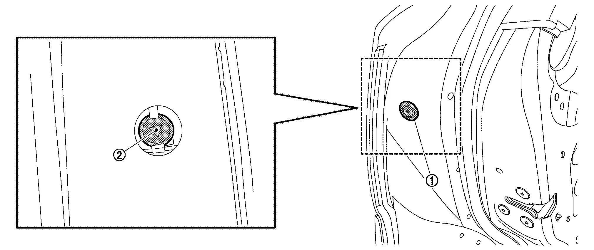 toward rear of Nissan Ariya vehicle and remove it according to the numerical order 1→2 indicated by arrows as shown in figure.