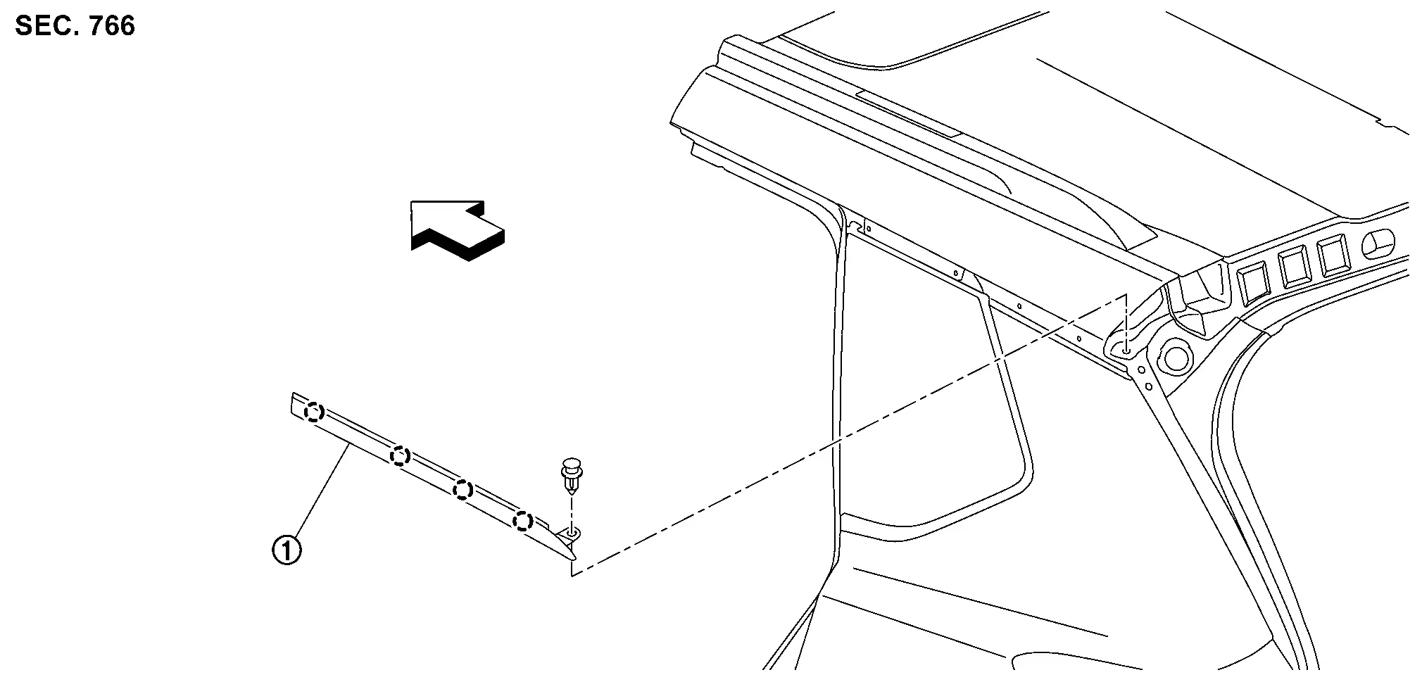 Nissan Rogue (T33) 2021-Present Service Manual: Removal and Installation :: Rear Fender Sash Molding