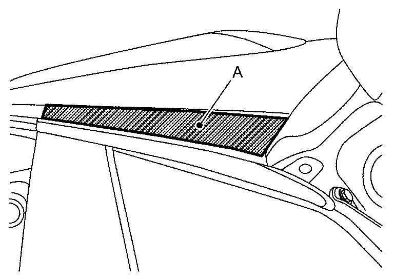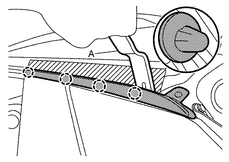 Disengage rear fender sash molding fixing clips using a remover tool (A), and then remove rear fender sash molding.