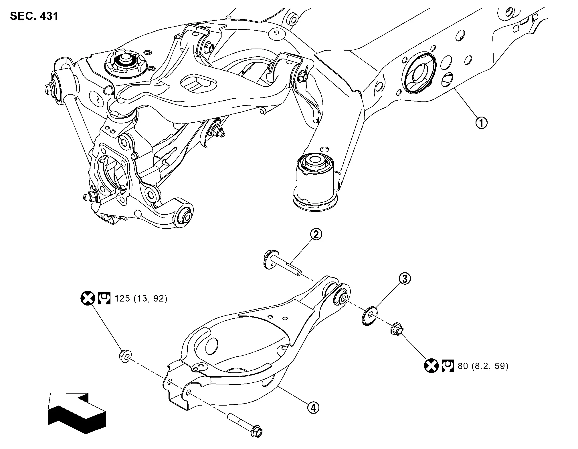 Nissan Rogue (T33) 2021-Present Service Manual: Removal and Installation :: Rear Lower Link