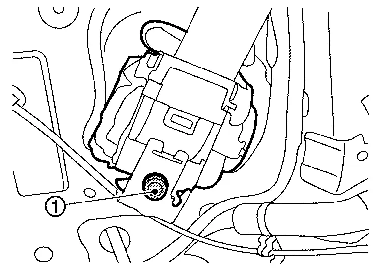 Remove center seat belt retractor mounting anchor nut (1), and then remove center seat belt retractor as a set.