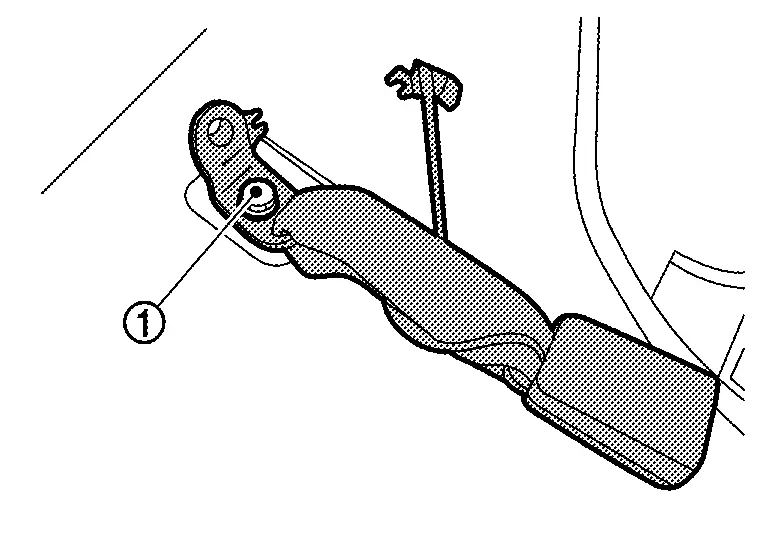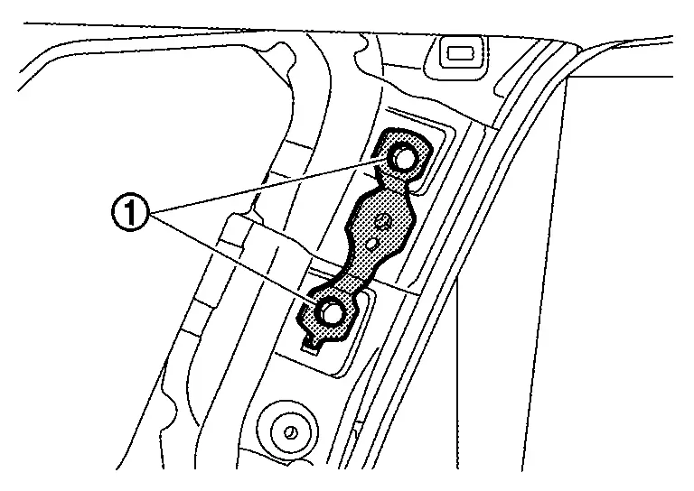 Remove shoulder bracket mounting anchor bolts (1), and then remove seat belt shoulder bracket.
