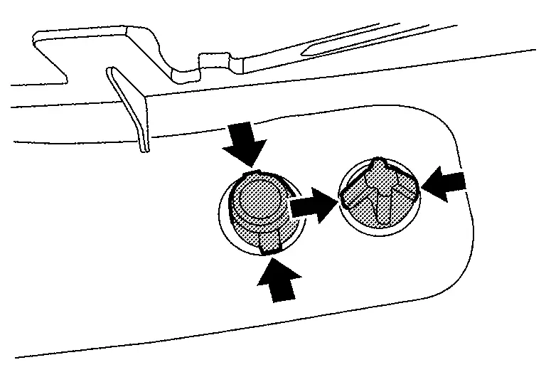 Press pawls indicated by arrows as shown in the figure and remove seat belt hook from luggage side finisher.