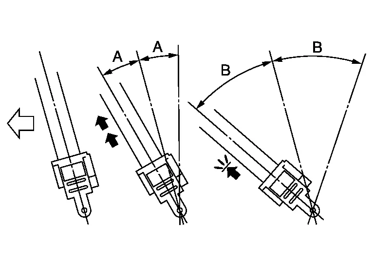 The webbing cannot be pulled out when the angle (B) is 27 degrees or more.