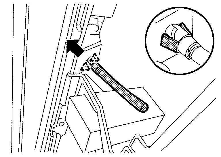 Remove rear washer nozzle. Refer to Removal and Installation.