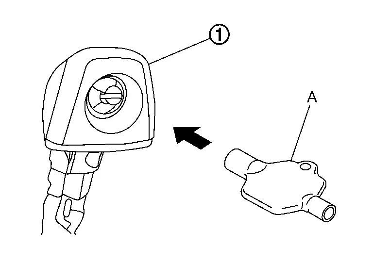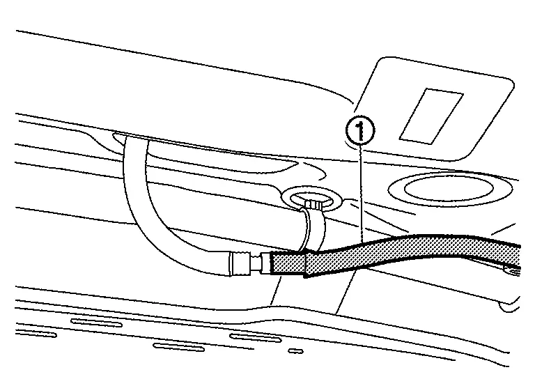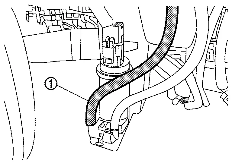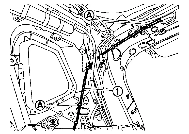 Disconnect rear washer tube A (1) from joint, and then remove rear washer tube A.