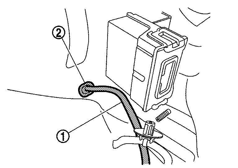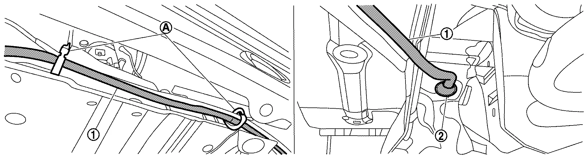 Remove grommet (2), and then rear washer tube A (1).