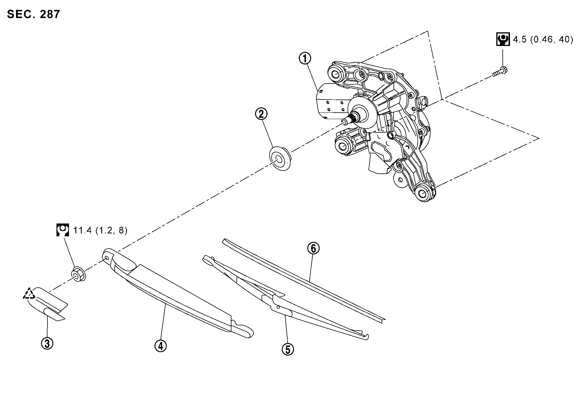 Nissan Rogue (T33) 2021-Present Service Manual: Removal and Installation :: Rear Wiper