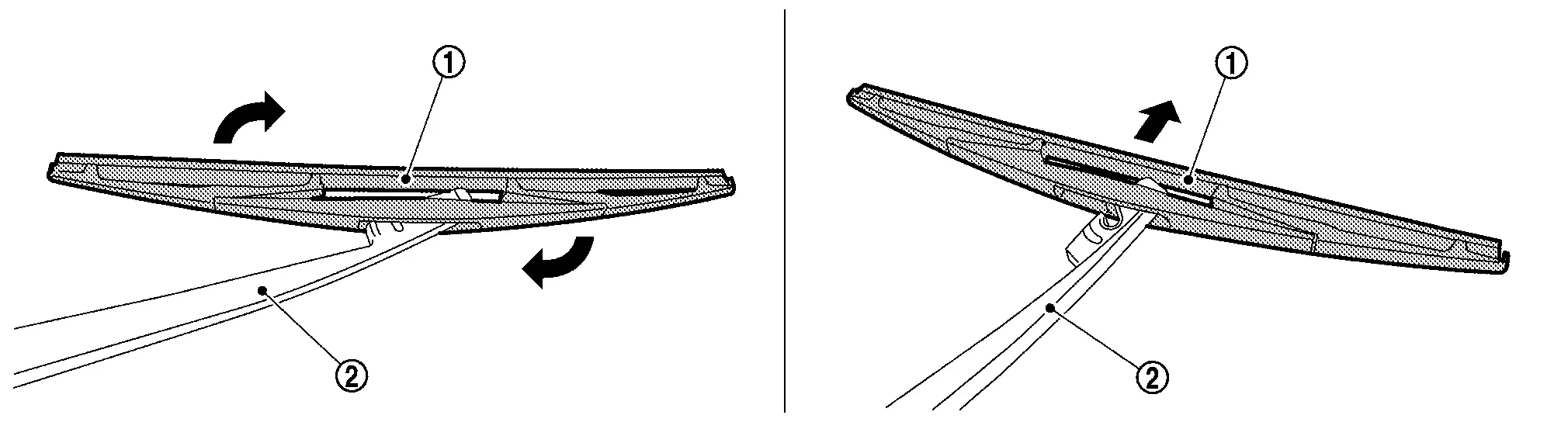 while rotating rear wiper blade in the direction indicated by the arrow as shown in the figure.