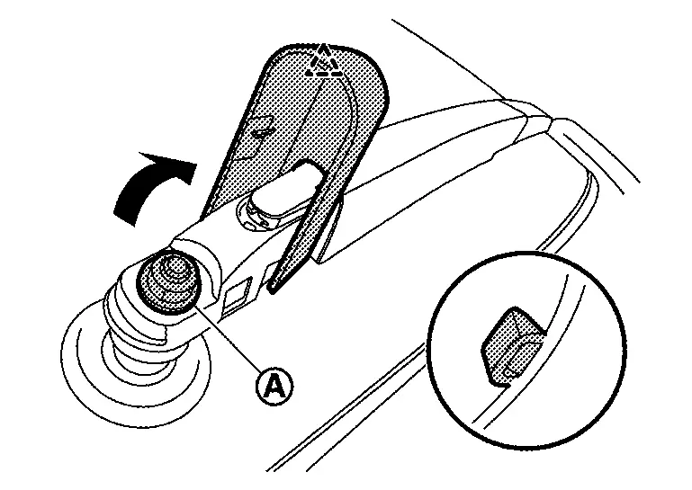 Clean rear wiper arm installation location as shown in the figure, and then fully insert rear wiper arm to prevent nut from being loosened by shakiness.