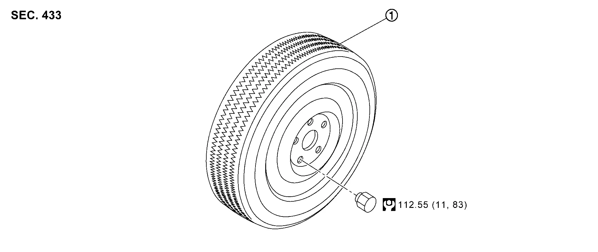 Nissan Rogue (T33) 2021-Present Service Manual: Removal and Installation :: Road Wheel Tire Assembly