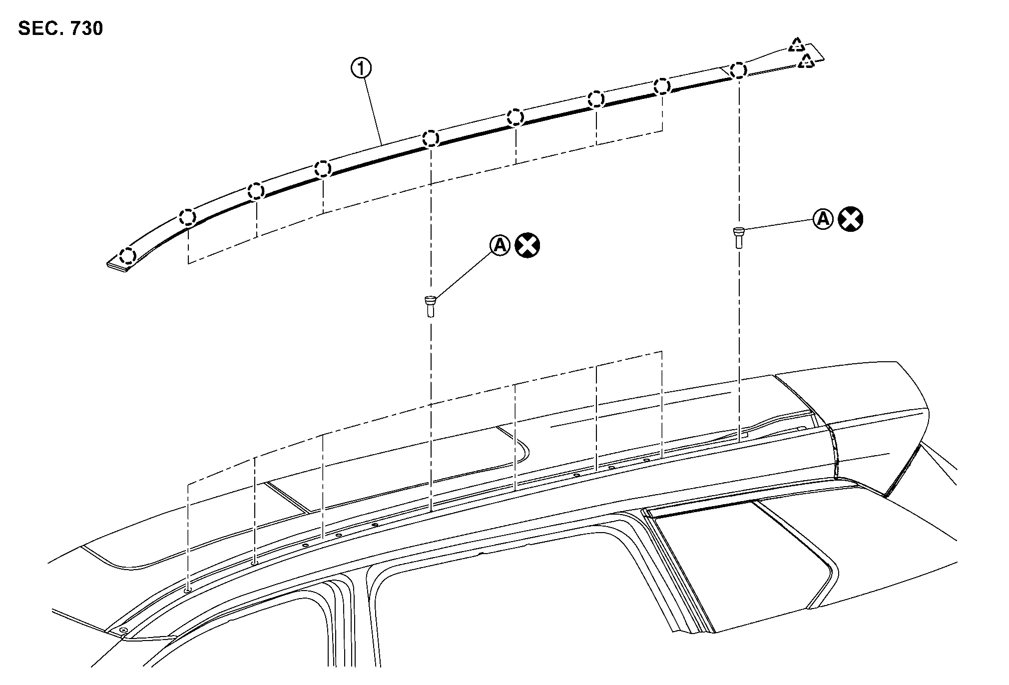 Nissan Rogue (T33) 2021-Present Service Manual: Removal and Installation :: Roof Side Molding