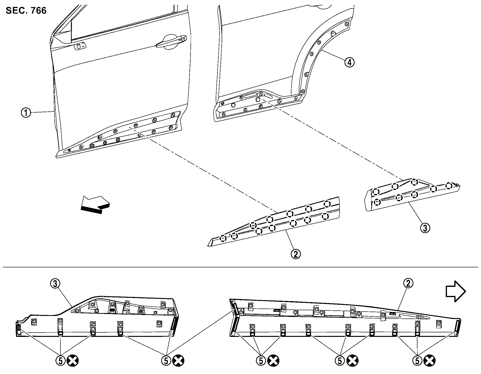 Nissan Rogue (T33) 2021-Present Service Manual: Removal and Installation :: Side Guard Molding