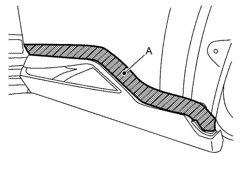 Disengage rear side guard molding fixing clips using a remover tool (A), and then remove rear side guard molding.