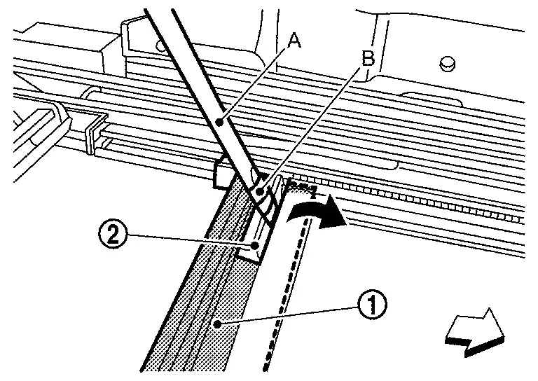 Disengage sunshade base fixing pawl using a remover tool (A).