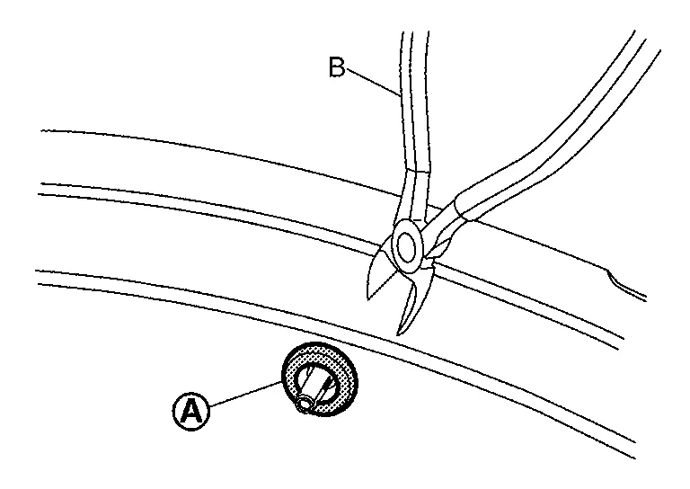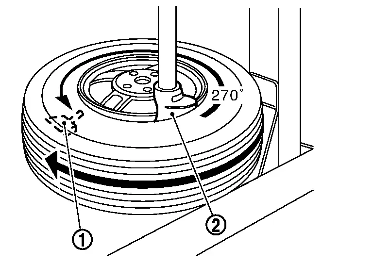 If the tire is reused, apply a matching mark to the position of the tire road wheel valve hole for the purpose of wheel balance adjustment after installation.