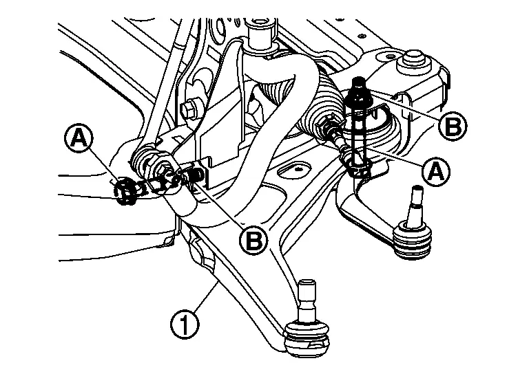 Perform final tightening of bolts and nuts at the Nissan Ariya vehicle installation position (rubber bushing), under unladen conditions with tires on level ground.