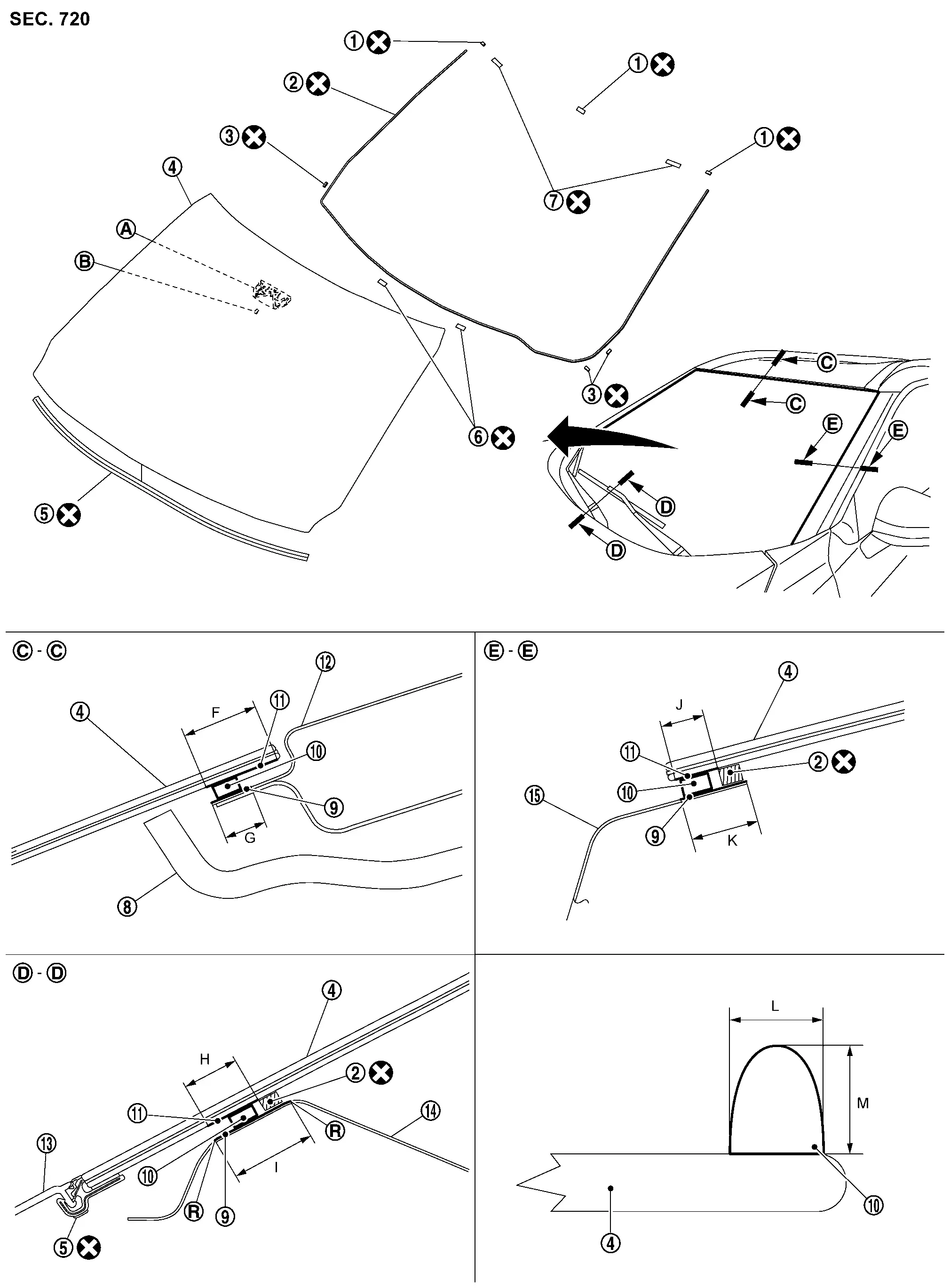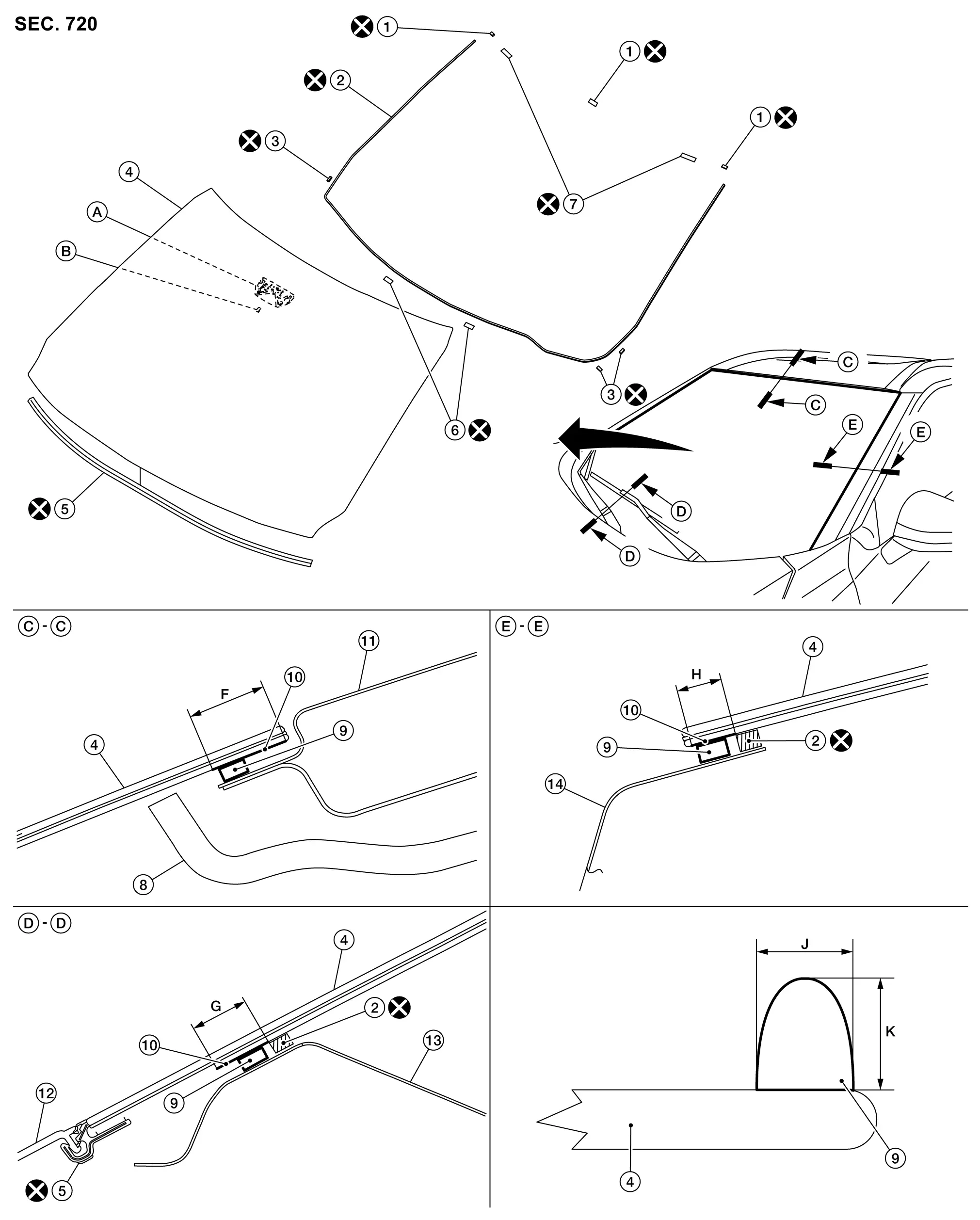 | Windshield glass – Roof panel | –![]() |