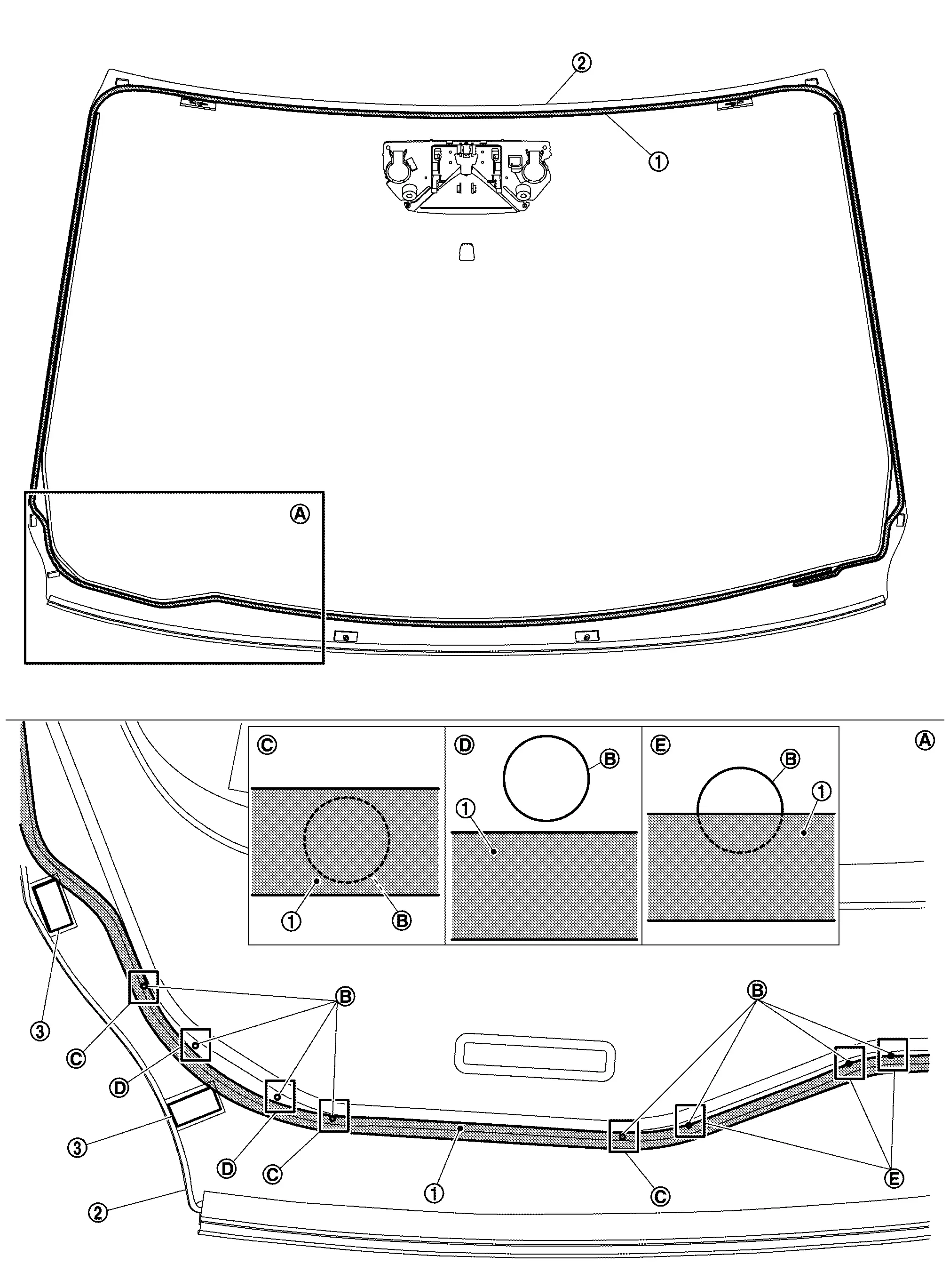 | Windshield glass – Body side outer panel | –![]() |