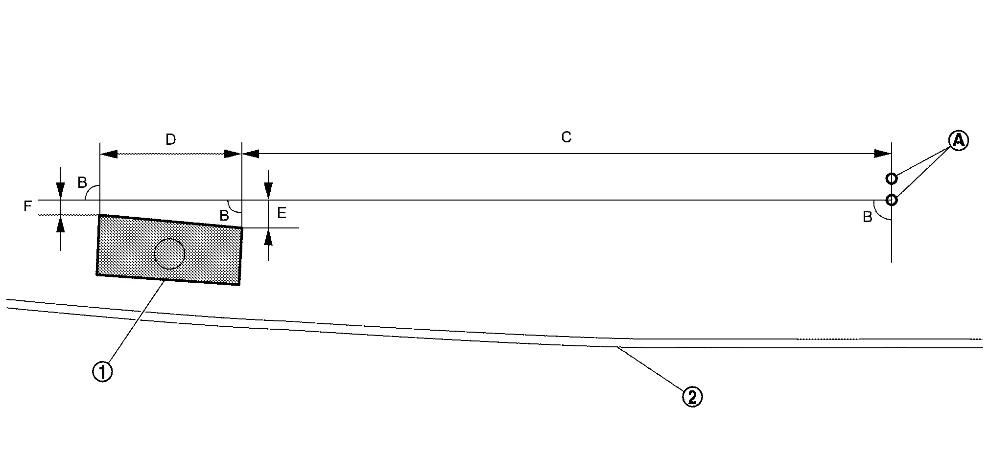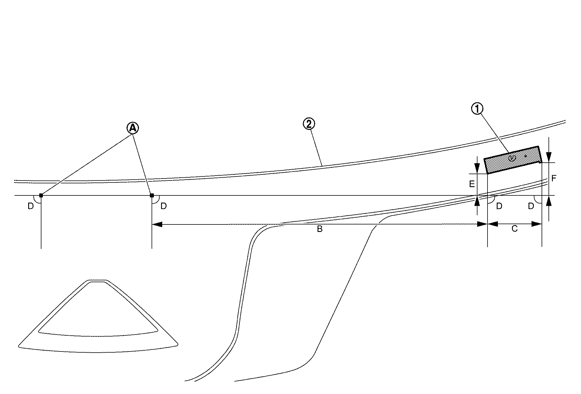 : Windshield glass black print matching mark B : 50.0 mm (1.97 in) C : 90° D : 7.2 mm (0.283 in)