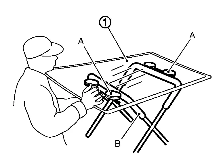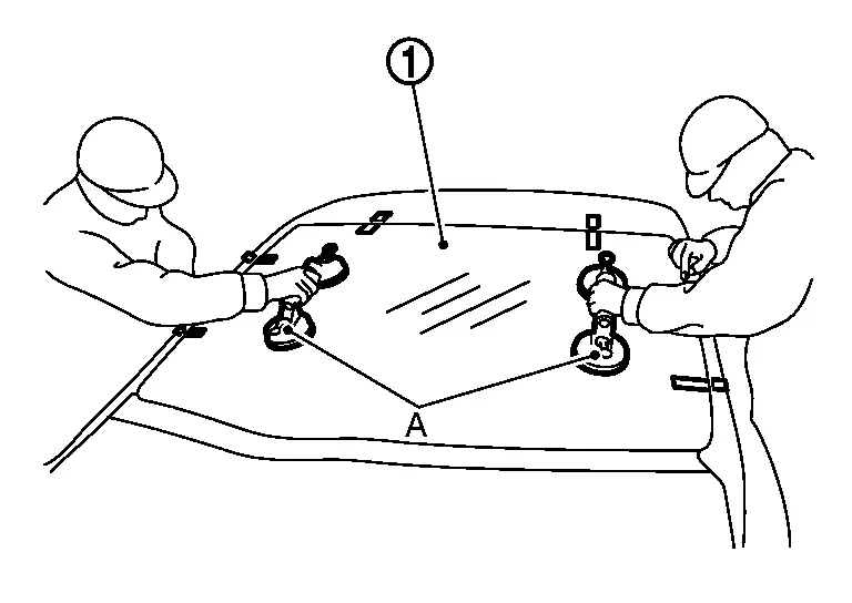 Use rubber suction cups or suction lifter (A), etc. to remove windshield glass from the Nissan Ariya vehicle.