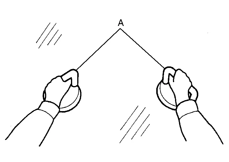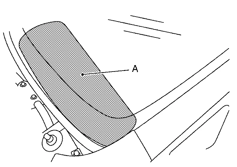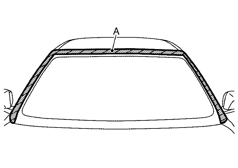 Apply protective tape (A) on roof panel and body side outer panel around windshield glass to protect painted surface from damage.