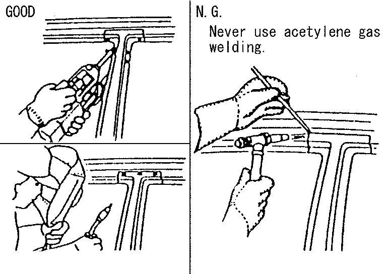If spot welding is impossible, use MIG. welding. Do not use gas (torch) for welding because it is inferior in welding strength.