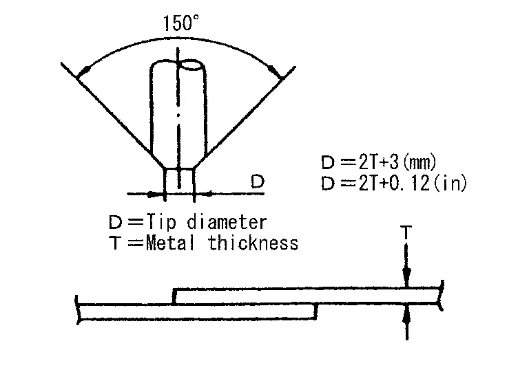 The electrode tip diameter must be sized properly according to the metal thickness.