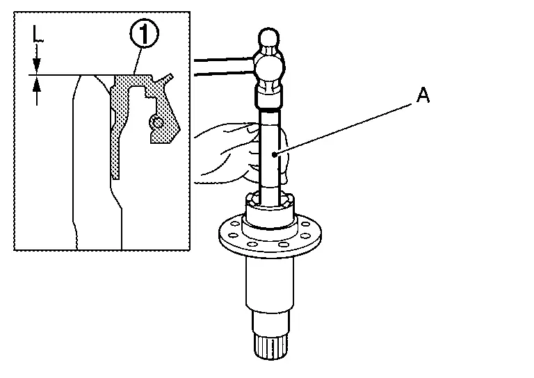 Using drift (A) (commercial service tool), install drive shaft oil seal