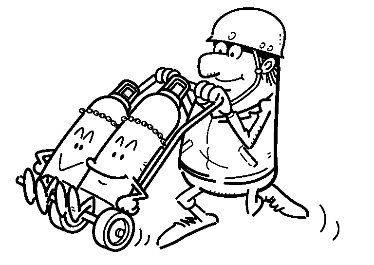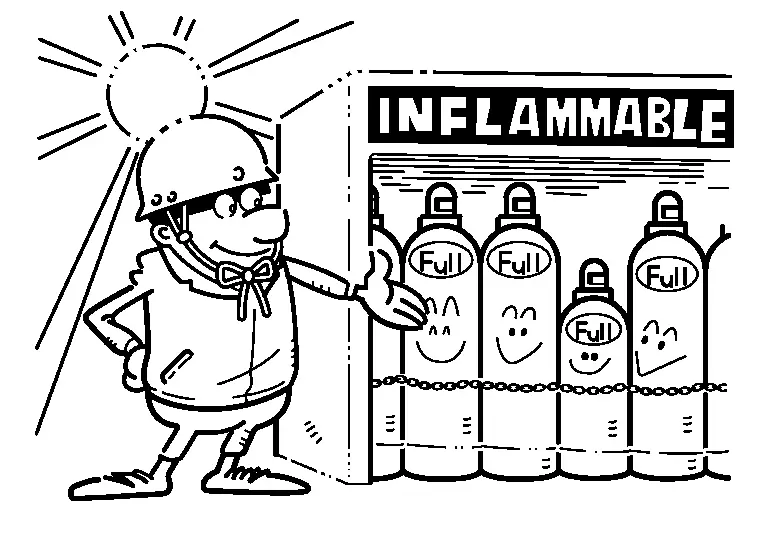 Acetylene cylinders must be stored upright. Check that they cannot fall down.