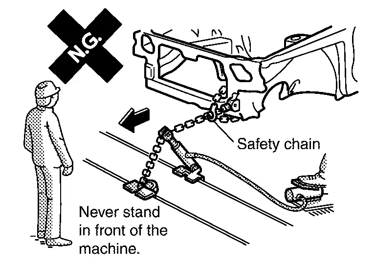 To prevent danger, any excessive slack in the safety chain must be taken up and properly wound.