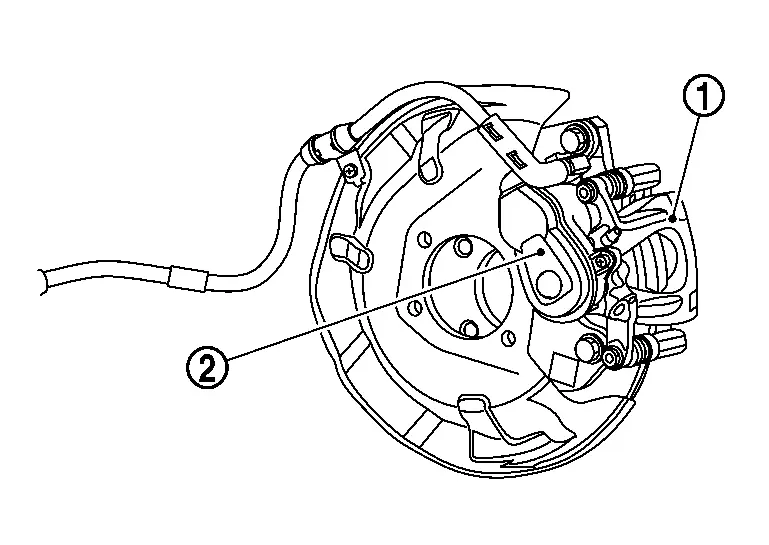 When replacing parking brake actuator, replace rear brake caliper assembly.