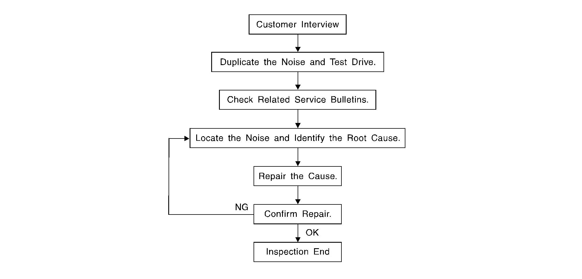 Confirm that the cause of a noise is repaired by test driving the vehicle. Operate the vehicle under the same conditions as when the noise originally occurred. Refer to the notes on the Diagnostic Worksheet.