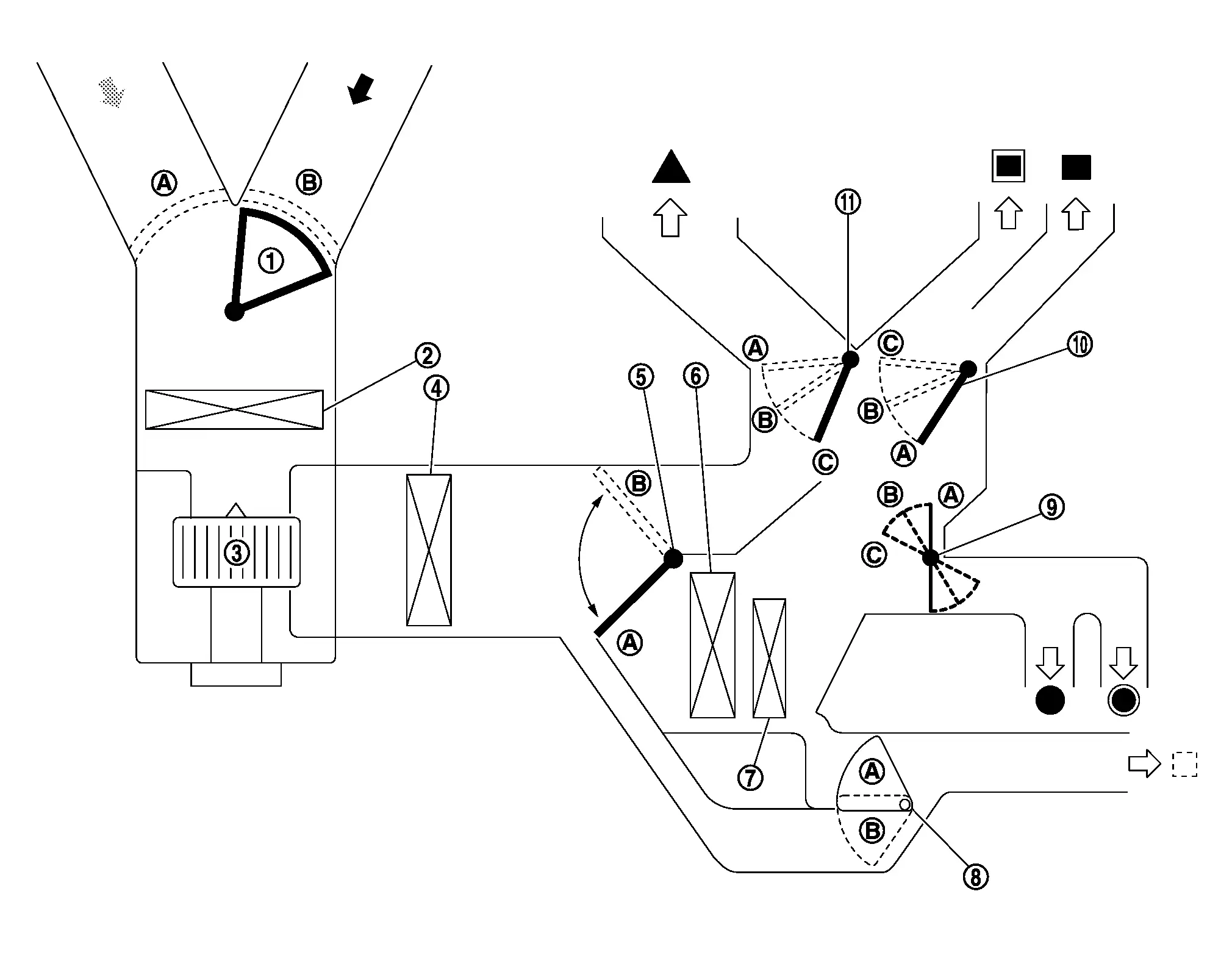 | 1. | Intake door | 2. | In-cabin microfilter | 3. | Front blower motor |