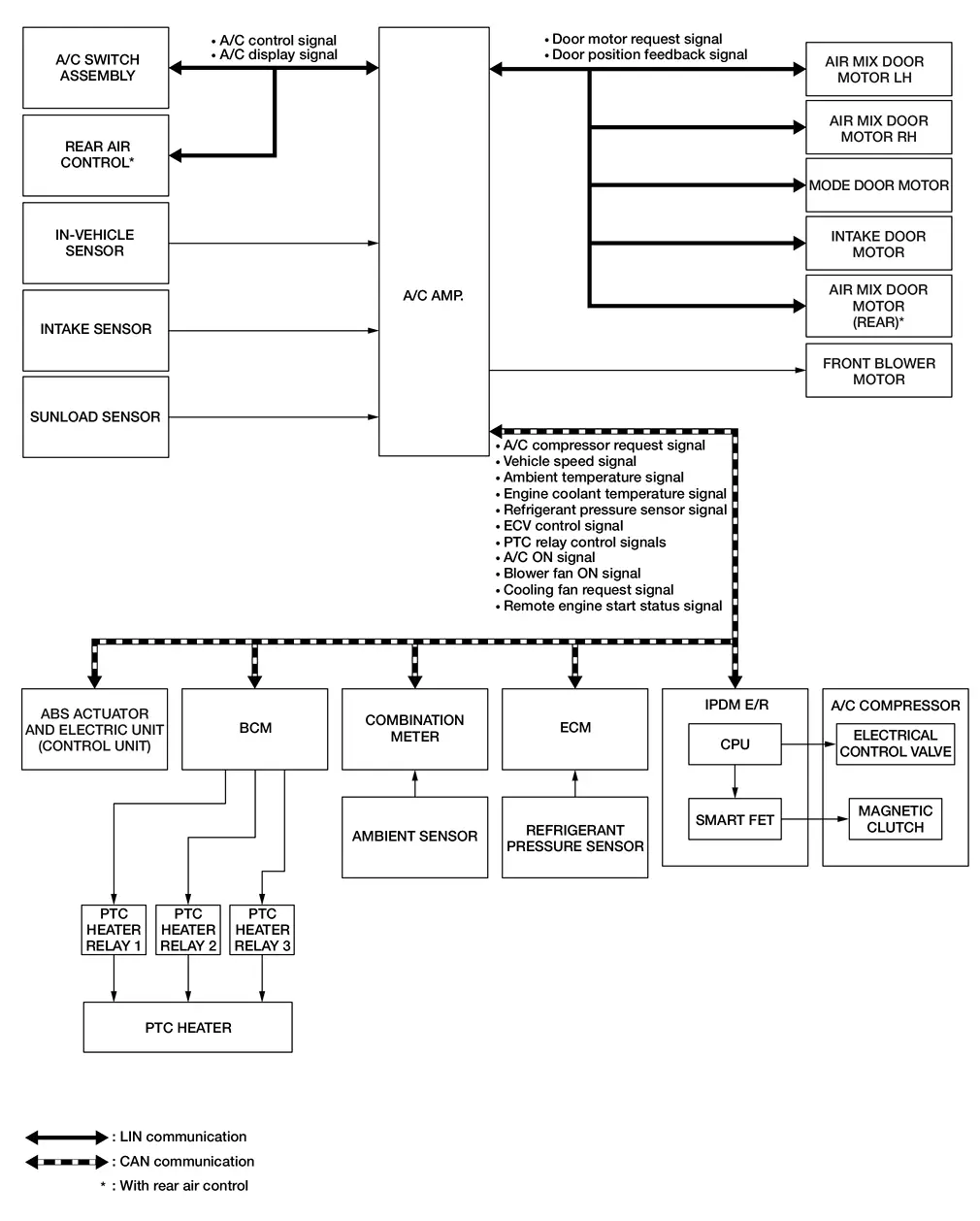 | IPDM E/R | Receives mainly the ECV control signal from A/C amp. via CAN communication. |