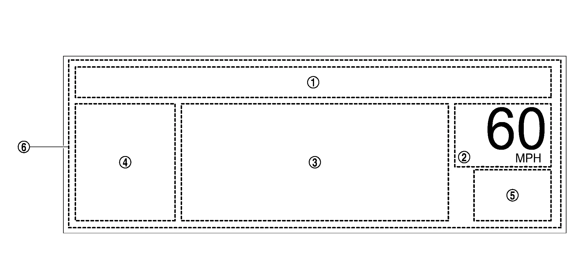 The display position, display rotation, display brightness, and display setting adjustment of the Head Up Display can be set on the setting screen of the combination meter. Refer to Switch Name and Function.