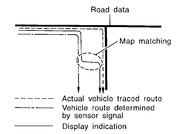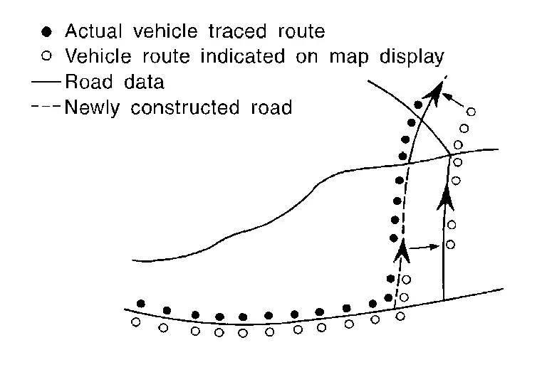Map-matching does not function correctly when a road on which the Nissan Ariya vehicle is driving is new and not recorded in the map data, or when road pattern stored in the map data and the actual road pattern are different due to repair.