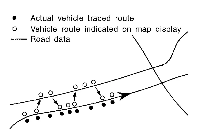 Map-matching compares a current location detected by the method in the “Location Detection Principle” with a road map data.