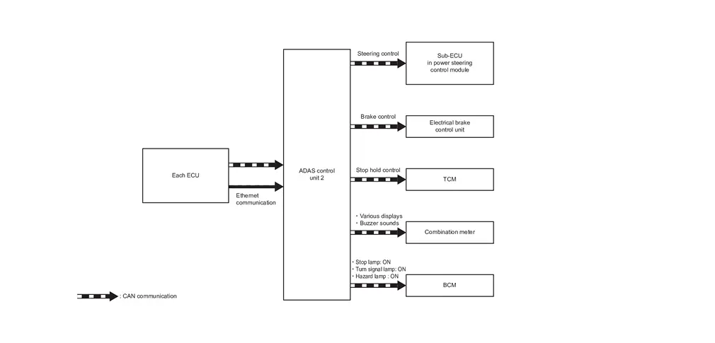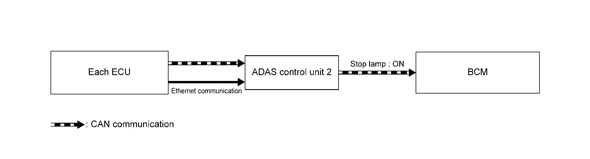 | Stop lamp ON | VDC→BCM | Turns ON stop lamp based on signal from ADAS control unit 2. |