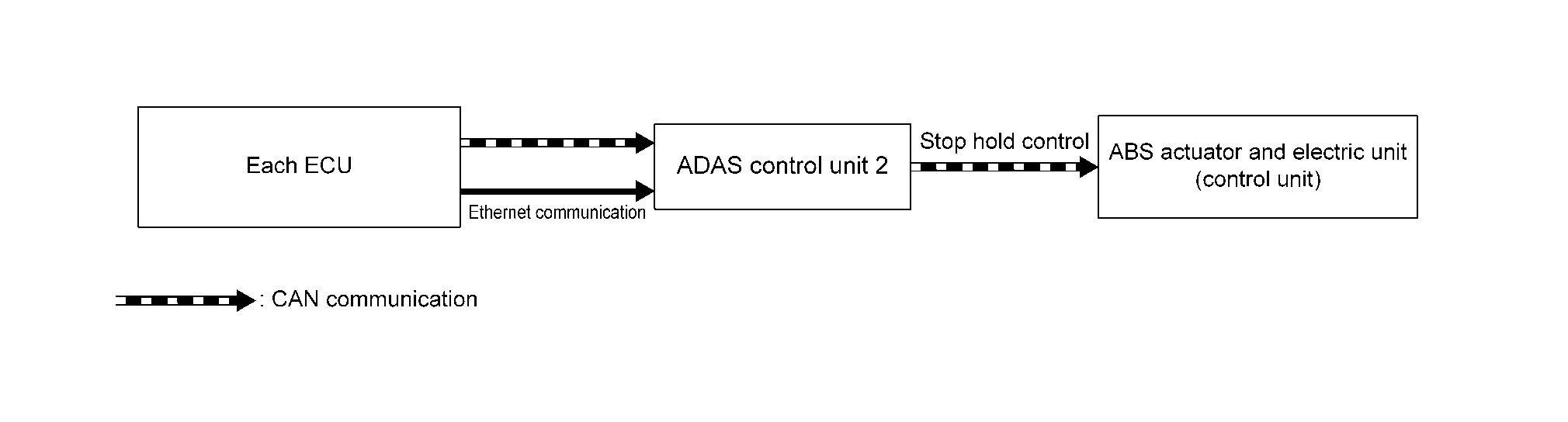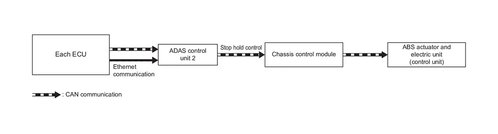 Control/Operation Control unit/Component Description Stop holding control ABS actuator and electric unit (control unit) Operates electric parking brake based on signal from ADAS control unit 2.