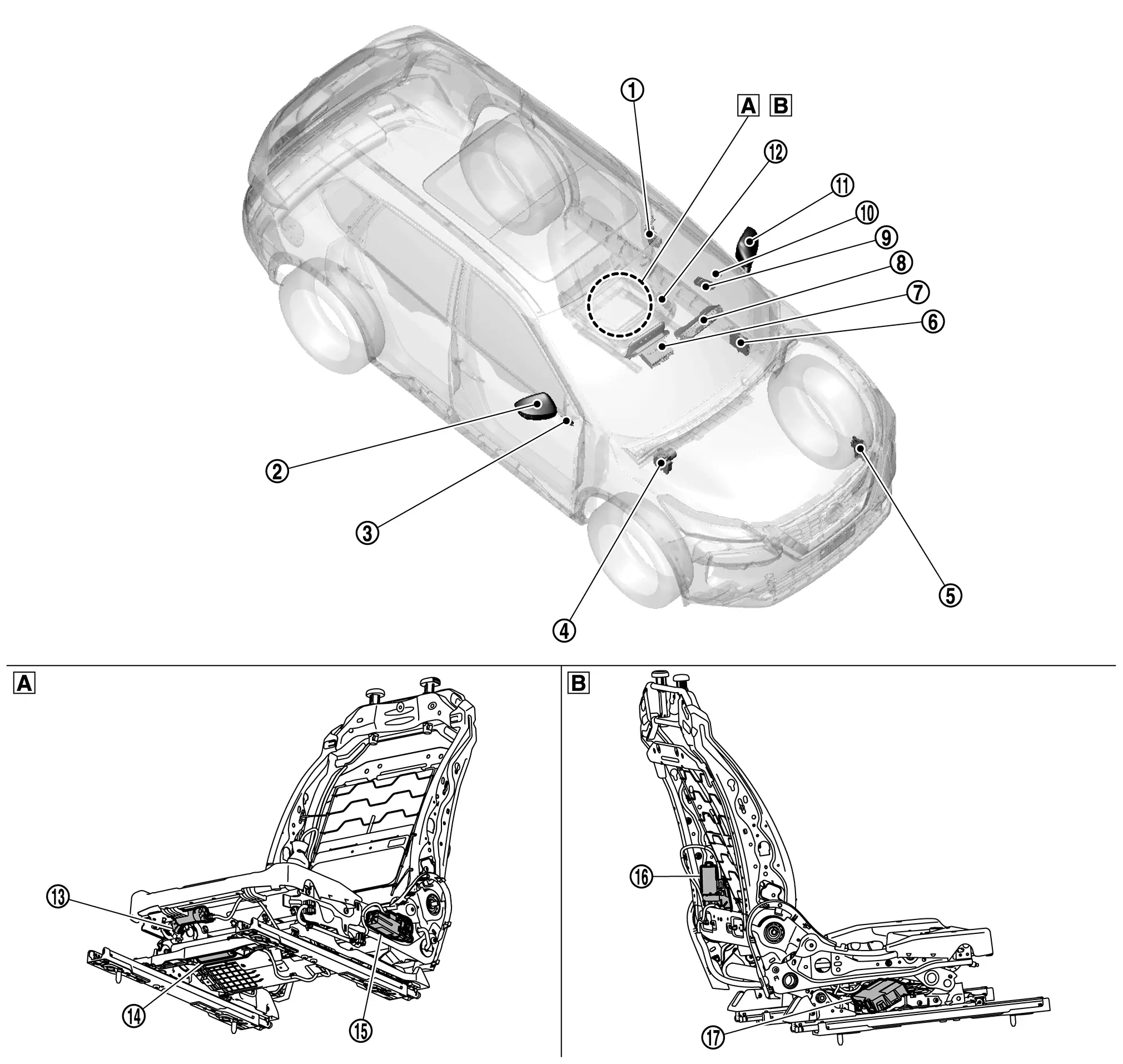 | 17. | Driver seat control unit | Refer to Driver Seat Control Unit. | ||
