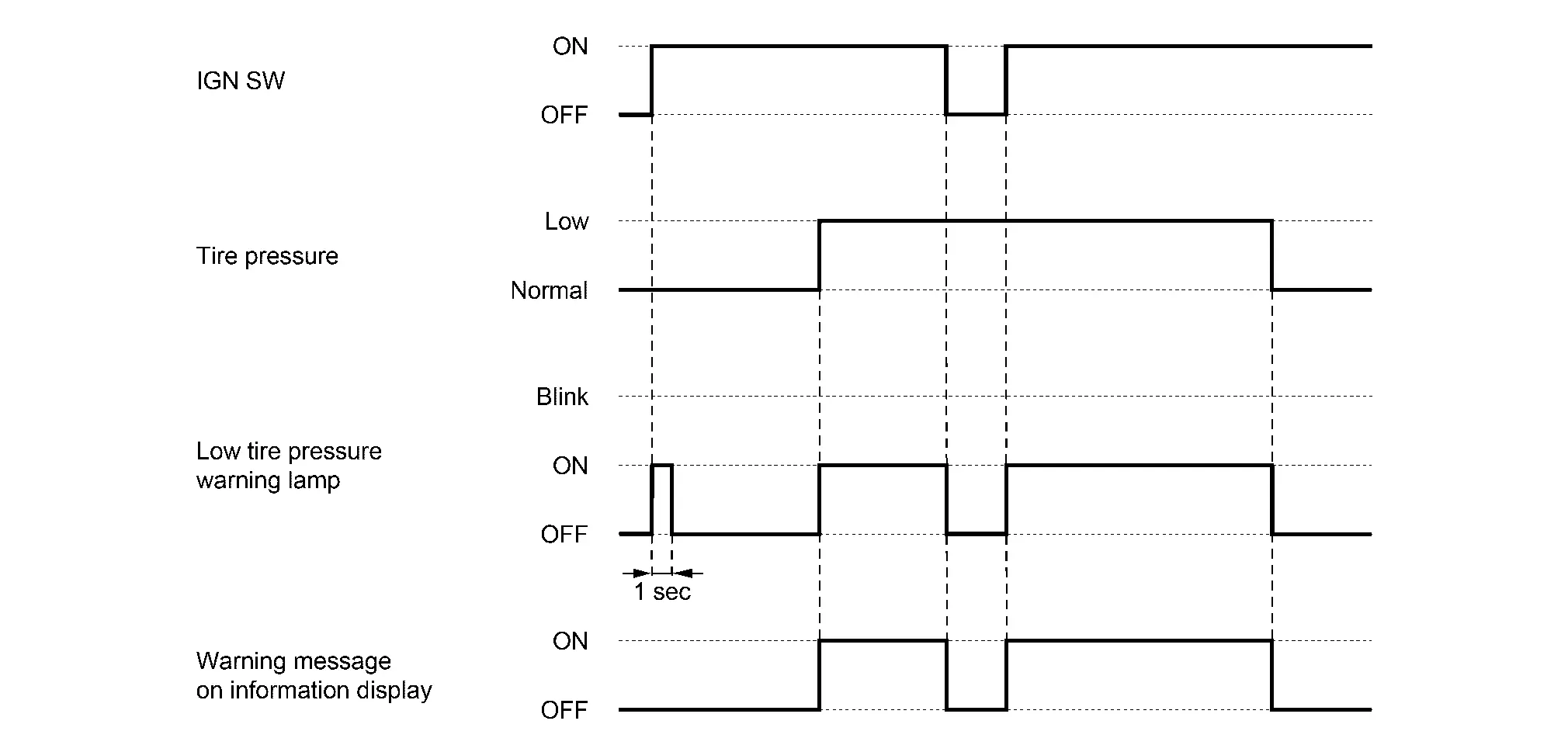 | Low tire pressure | ON | Low Tire Pressure Warning |