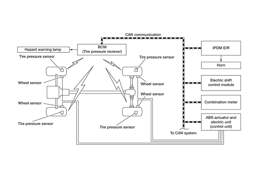 Uses CAN communication from the BCM to illuminate the low tire pressure warning lamp in the combination meter.
